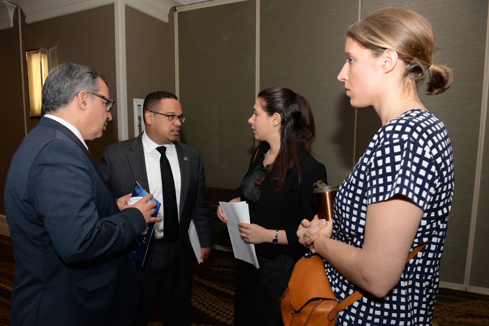 Dr. Afsaruddin then welcomedCongressman Keith Ellison (D-MN), who opened the annual conference on a strong foot by saying that it is an imperative to not only spread the message of the compatibility of Islam and democracy, but to participate in making it a reality. The Congressman began by discussing the domestic scene, observing that what happens to American Muslims has repercussions around the world, perhaps never more clearly than today with the rise of ISIS and other violent extremist organizations. In the battle of ideas, Congressman Ellison said that an organized and unwavering constituency must rally in order to really support it and bring it to fruition, both regarding the fight against the vitriol highlighted during the United States presidential election primary season as well as abroad. Connecting this to the case of Tunisia, the Congressman insisted that the United States must do more to stand by the country in what has been a very difficult democratic transition.